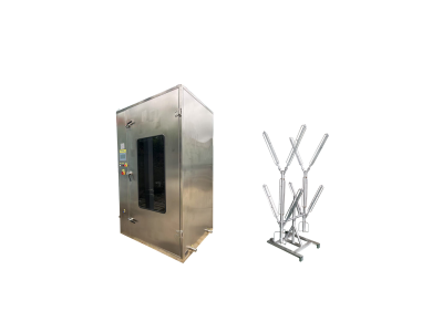 用于救援后的防化服清洗与烘干,由触控面板操作,PLC自动控制运行,操作简便,能一次性清洗烘干2套防化服。洗涤仓由不锈钢制成,内部四周布设高压喷头及可旋转喷头,可360°无死角对防化服表面进行清洗消毒;配有防化服支撑喷淋架,三维立体喷淋及暖风喷射口设计,可高效对防化服内部进行无死角清洗及烘干,带自动抽吸泵,可抽取防化服内部清洗时的积水,防止积液。清洗室带钢化玻璃窗,可观察清洗室内动向。清洗作业时可自动配比洗消药剂,一键式启动,根据预设清洗时间自动完成清洗烘干工作。配合适当夹具亦可作为呼吸面罩等个人防护装备的清洗烘干